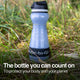 MOST EARTH FRIENDLY BOTTLE AVAILABLE. Made from sugarcane yet is as durable and machine washable as regular plastic. Reusable. Recyclable. Each filter replaces 400 single-use plastic bottles. Packaging is recycled cardboard printed with vegetable inks.